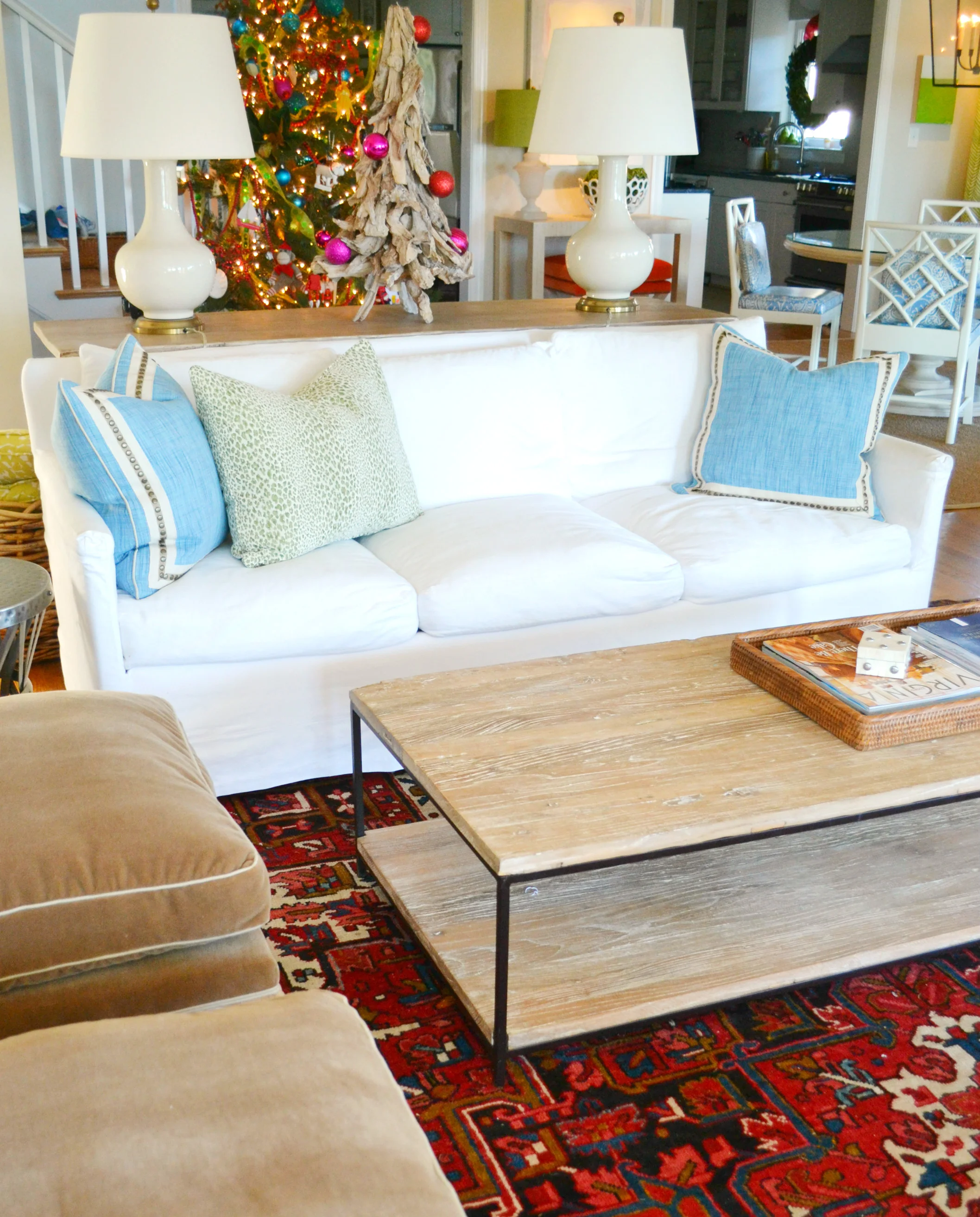 it was time to make a couple of changes....our pillows were getting tired....and we needed a pair of ottomans for our club chairs (we only had one before it was always high in demand!) I've been pondering over "the look" for at least 2 years....i can NEVER make design decisions for myself! a few weeks ago, i decided to bite the bullet.....i went to my fabric library, and picked my favorite fabrics and went to work. i rolled the dice and it paid off............im REALLY excited about the results! two ottomans and 7 pillows later, we have a fresh new space again...come take a look!