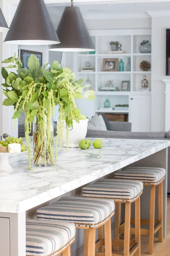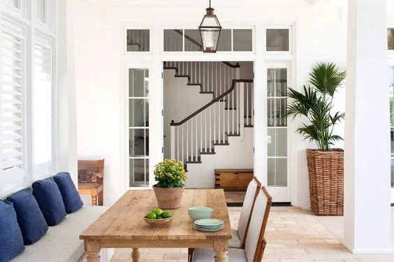 AND THEN WE FILLED IN WITH OTTOMANS AND LAMPS FOR A SOFT REFRESHING LOOK TO WELCOME YOU WHEN YOU WALK IN....