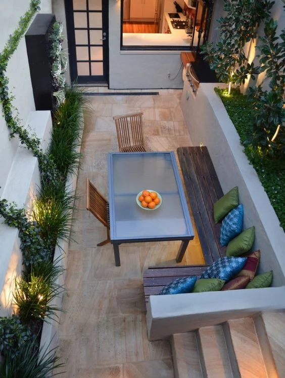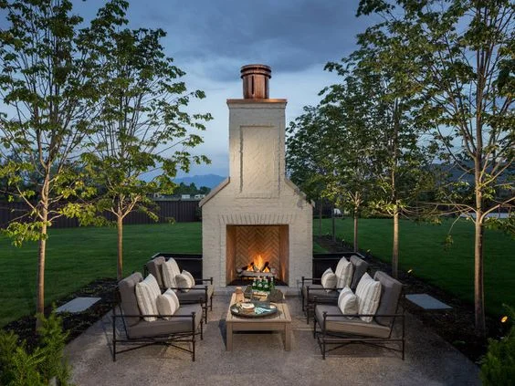 Our Gussie demilune is a perfect fit along the angled wall in this seating arrangement.
